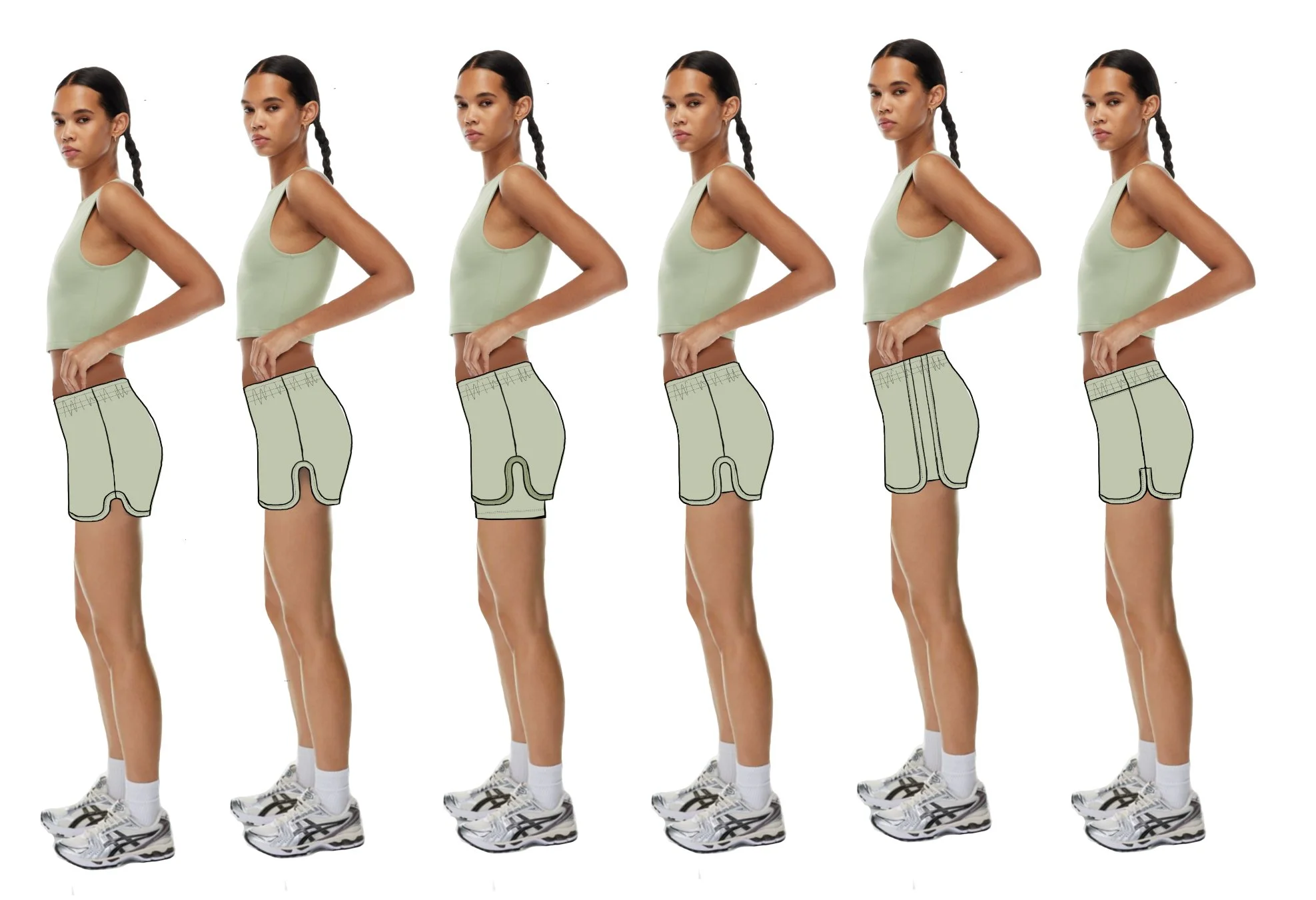 I am the only apparel designer on this project, having full reign in the story telling. So I created a concept around their font and logo, which at that point was the only thing solidified for the brand. I thought the curves of the W worked in nicely with the flow and ease of the brands message, and should translate into design lines where necessary. I wanted to truly focus on sourcing soft materials that performed, and didn’t show sweat. We wanted to create a workout set, but also a set that can be worn for yoga and to work at a coffee shop.